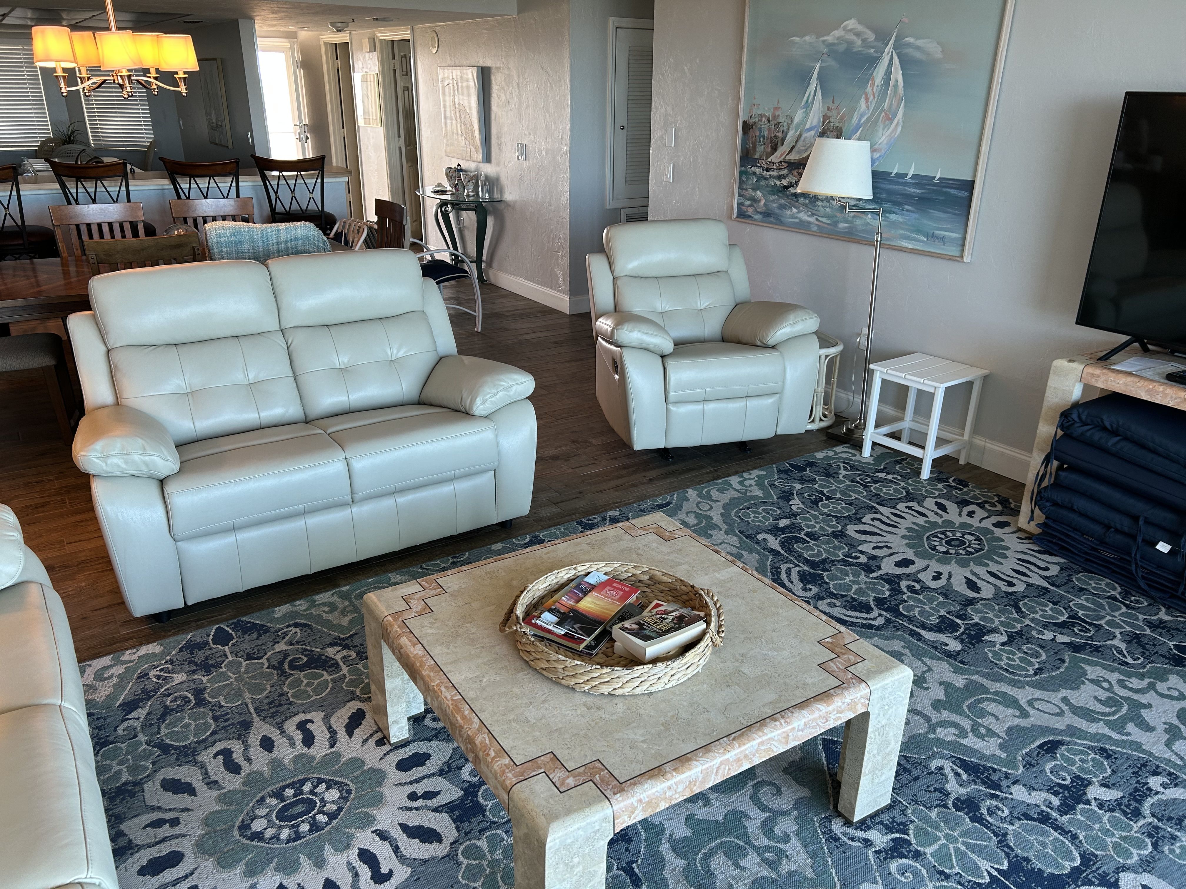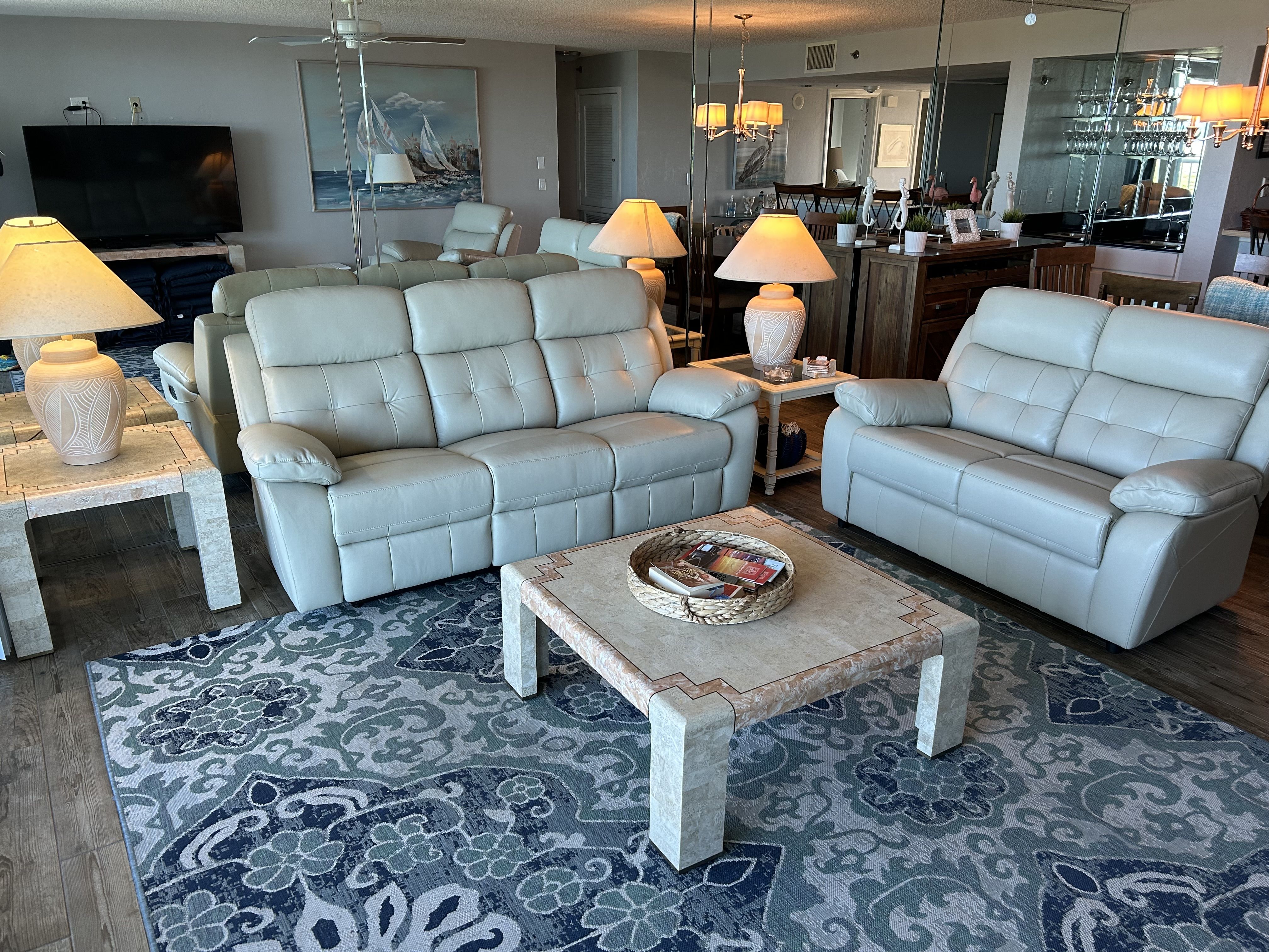 Book NowCome enjoy the spectacular views from this lovely 6th floor 2 bedroom 2 bath unit. Both bathrooms have been recently renovated to walk in tile showers and new vanities with a double sink in the master. Sparkling clean with a fun beachy nautical vibe. Prepare to relax as you watch the sunsets and moonrises from either the master bedroom or the huge balcony which is the entire length of the unit. Easy living and friendly atmosphere is all here at The Inlet. The swimming pool is large and inviting and also over looks the beach. This lovely complex backs up to the national park so its a short walk to the inlet and great exercise hiking the boardwalk with spectacular views of the lighthouse as well as the Inlet, River and Ocean. Owner may agree to a 6 month lease with a discount. No Pets are allowed for guests. We Look forward to hosting you. Weekly and Monthly rentals available. Cleaning for weekly rentals is $200 and $250 for monthly.